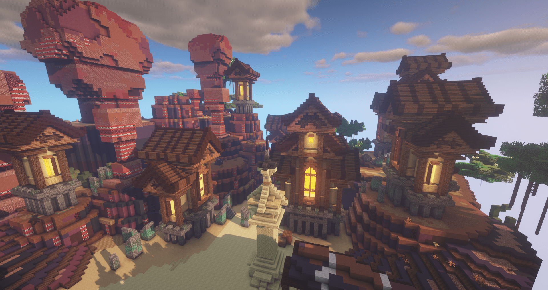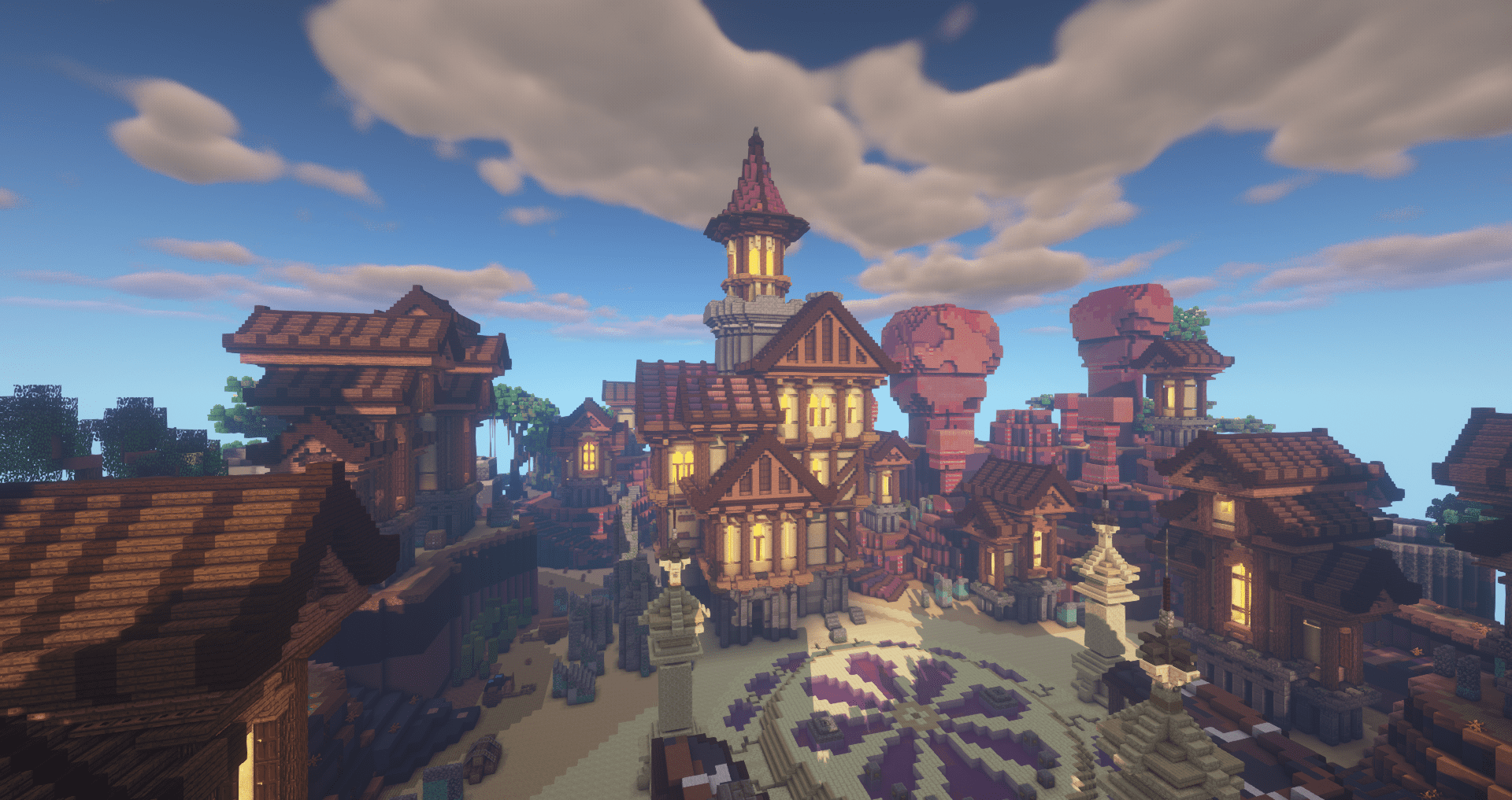 Featuring a stunning medieval village with a beautifully designed mansion with an exquisite interior - surrounded by lush trees, all compatible with Minecraft versions 1.8 through 1.18+.